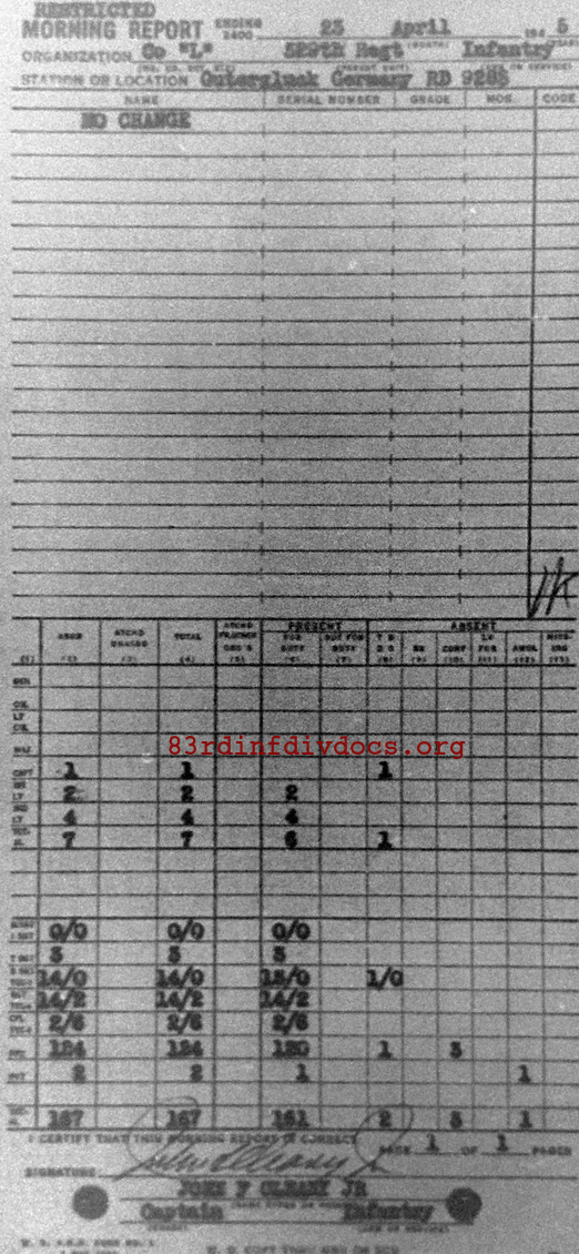 Morning report L/329 for April 23, 1945