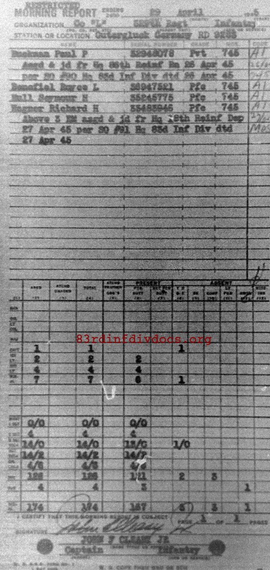 Morning report L/329 for April 29, 1945