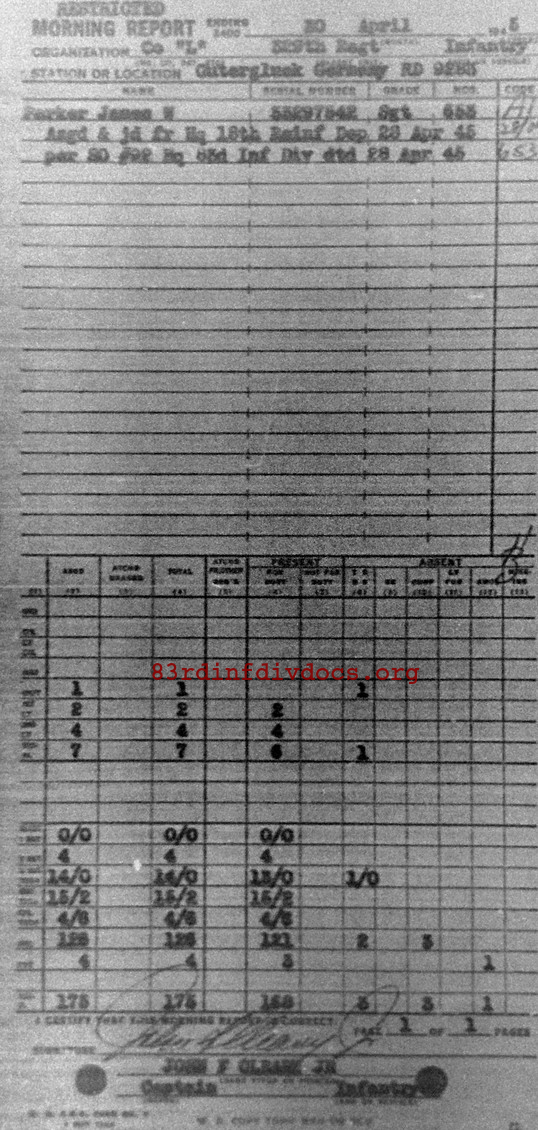 Morning report L/329 for April 30, 1945