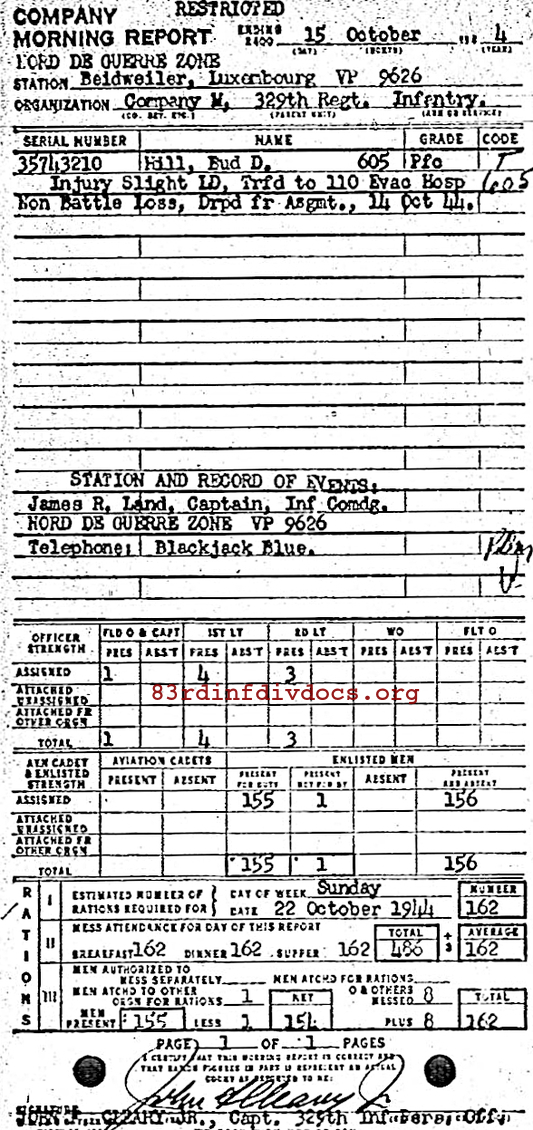 James R Land, Captain, Inf Comdg. NdG VP9626. Telephone Blackjack Blue
