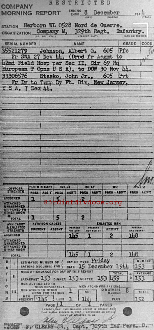 Morning report M/329 for December 8, 1944