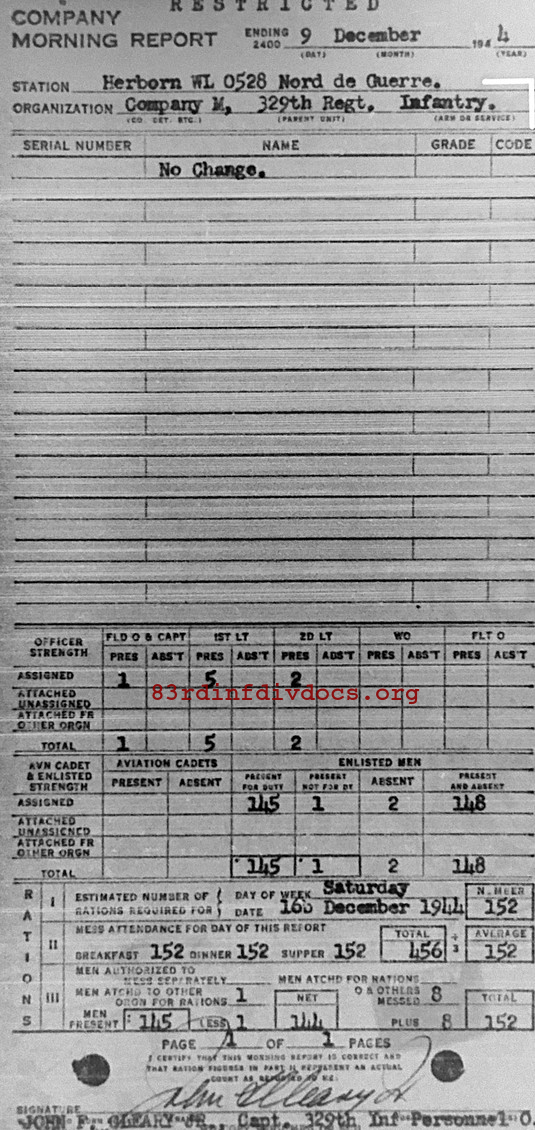 Morning report M/329 for December 9, 1944