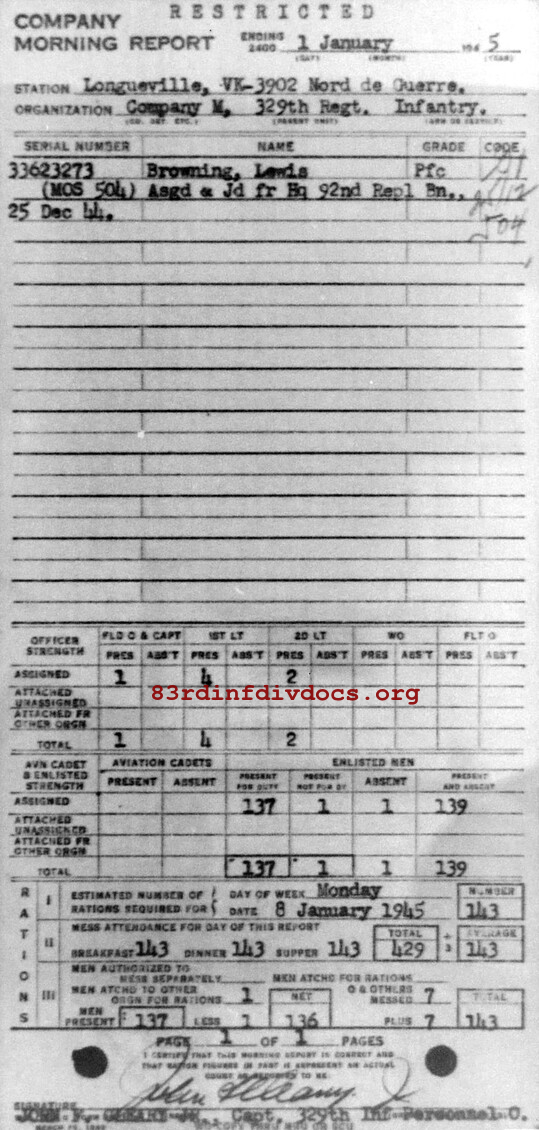 Morning report M/329 for January 1, 1945