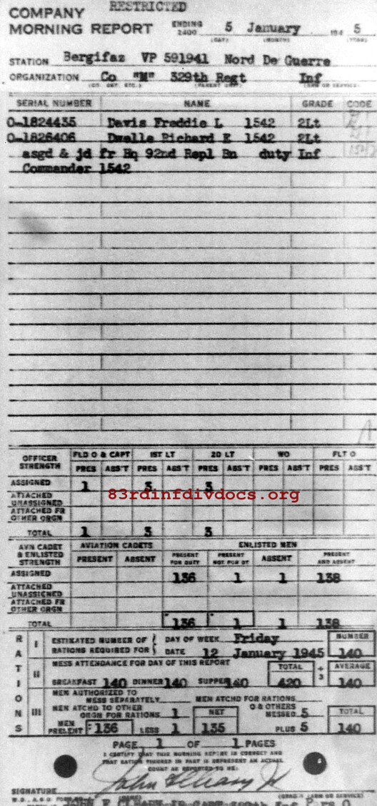 Morning report M/329 for January 5, 1945