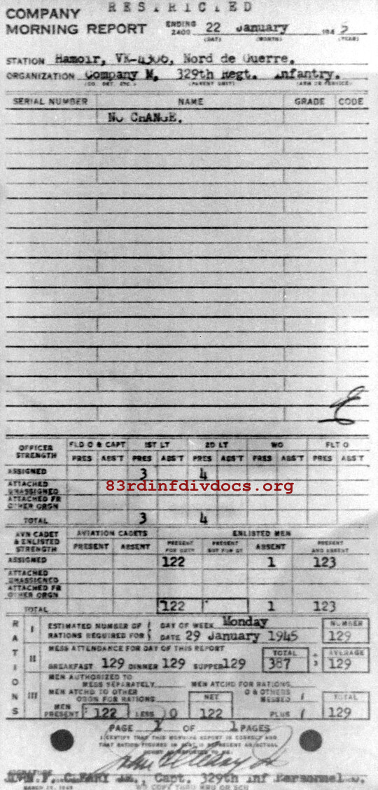 Morning report M/329 for January 22, 1945