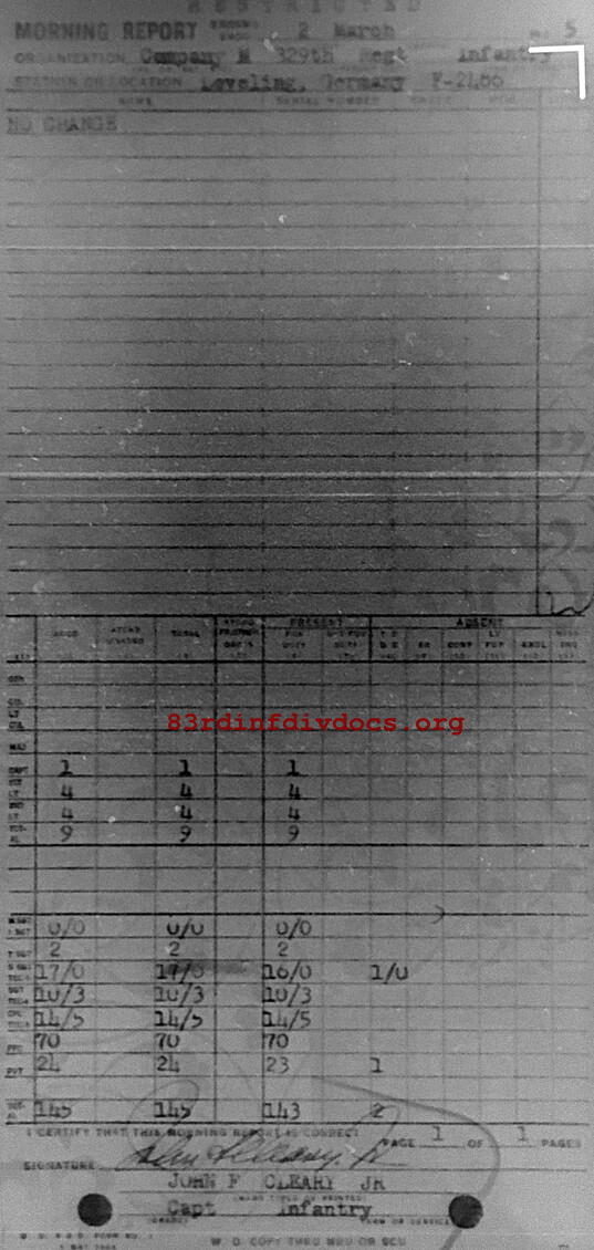 Morning report M/329 for March 2, 1945
