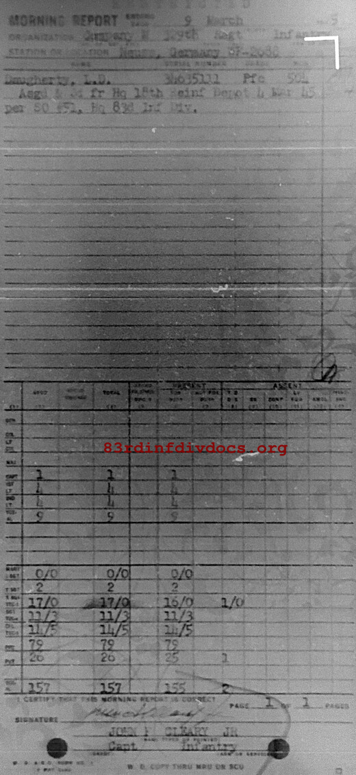 Morning report M/329 for March 9, 1945