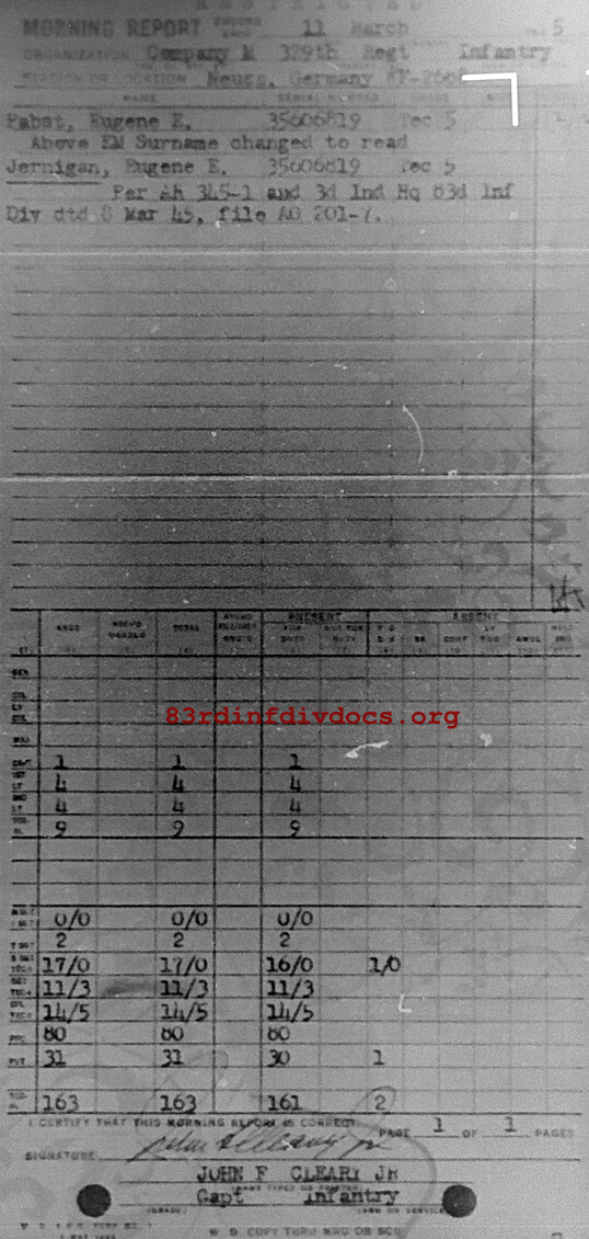 Morning report M/329 for March 11, 1945