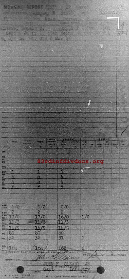 Morning report M/329 for March 12, 1945