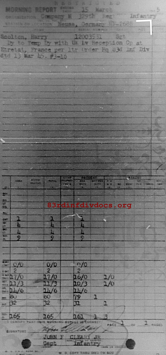 Morning report M/329 for March 15, 1945