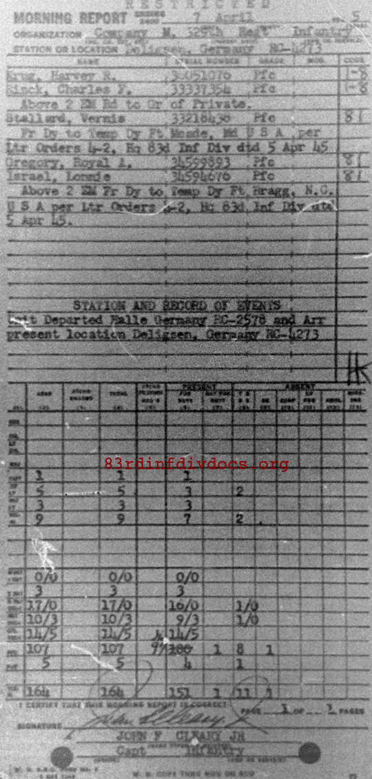 Unit Departed Halle Germany RC2578 and Arr present location Deligsen, Germany RC4273