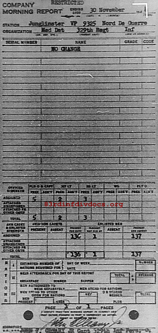 Morning report MEDDET/329 for November 30, 1944