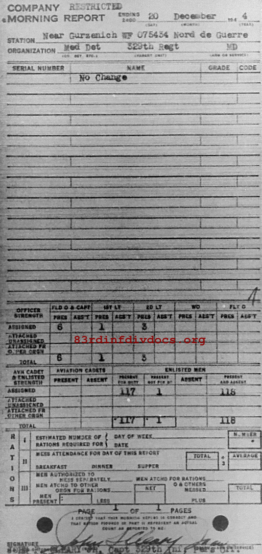 Morning report MEDDET/329 for December 20, 1944