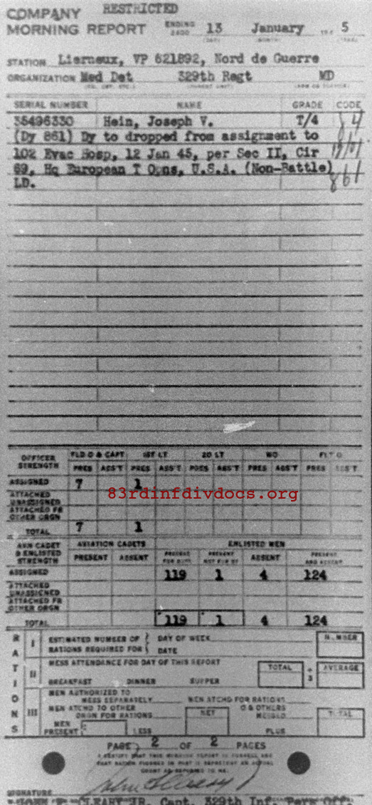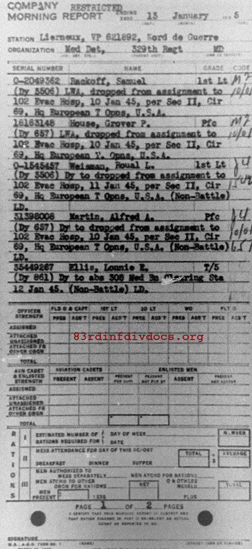 Morning report MEDDET/329 for January 13, 1945