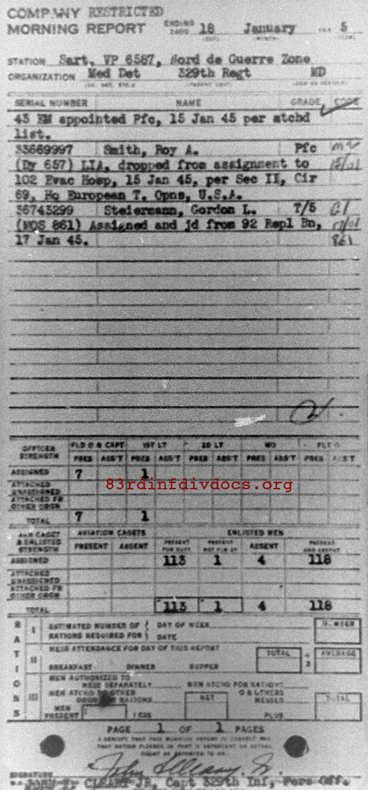 Morning report MEDDET/329 for January 18, 1945