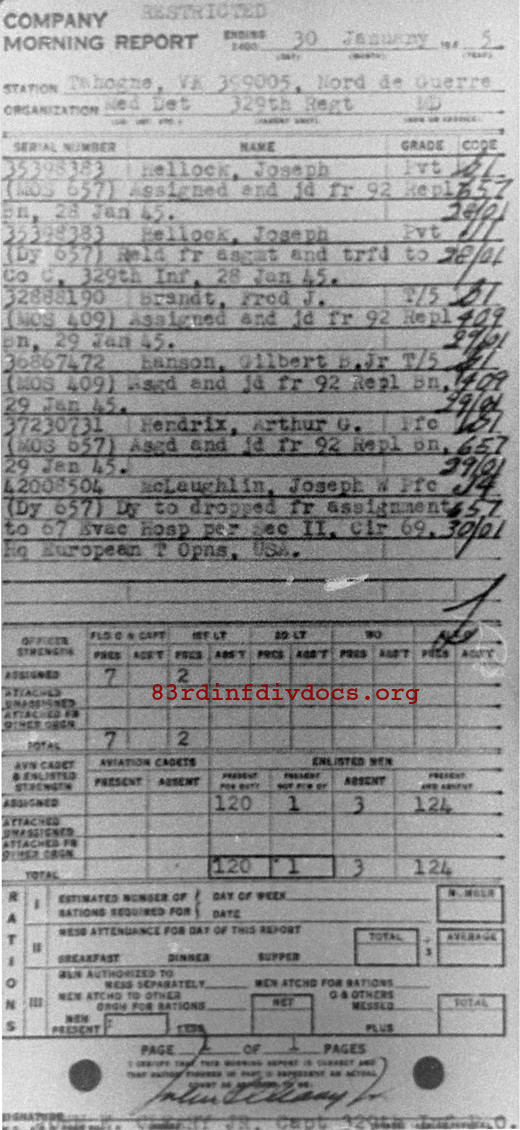 Morning report MEDDET/329 for January 30, 1945