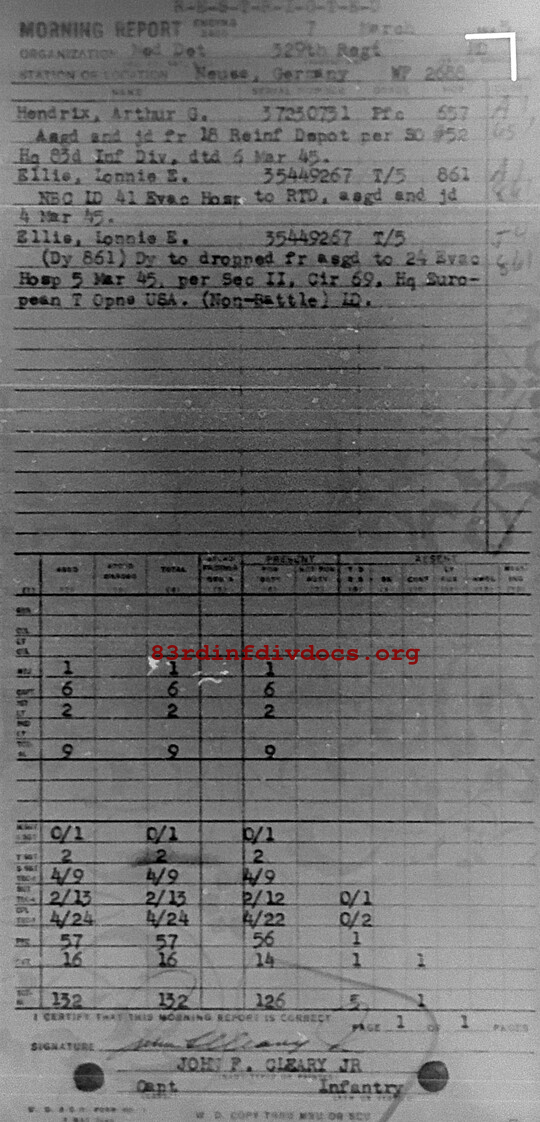 Morning report MEDDET/329 for March 7, 1945