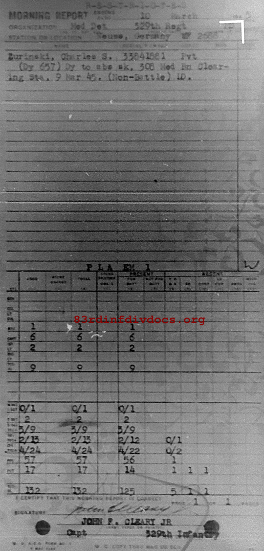 Morning report MEDDET/329 for March 10, 1945