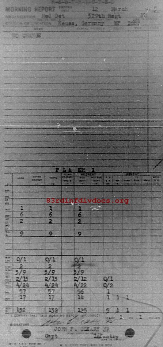 Morning report MEDDET/329 for March 12, 1945