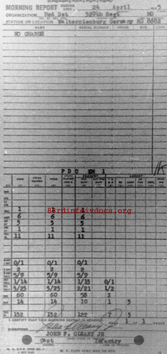 Morning report MEDDET/329 for April 24, 1945