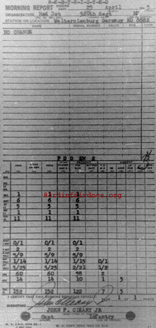 Morning report MEDDET/329 for April 25, 1945