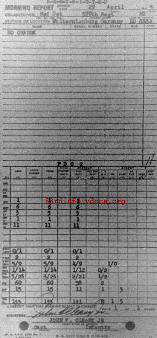 Morning report MEDDET/329 for April 29, 1945