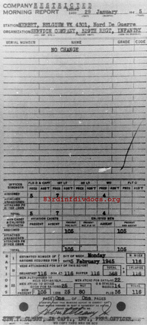 Morning report SERCO/329 for January 29, 1945