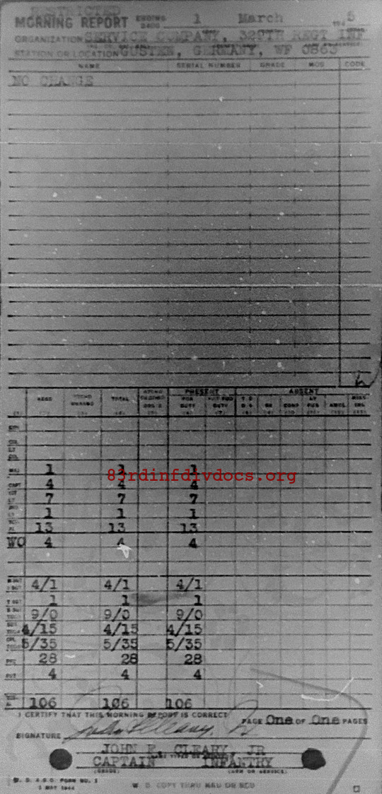 Morning report SERCO/329 for March 1, 1945