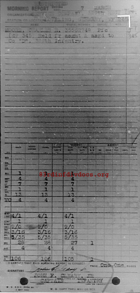 Morning report SERCO/329 for March 7, 1945