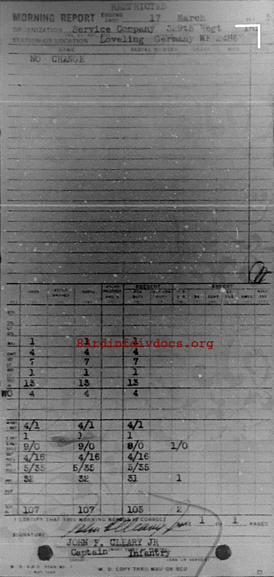 Morning report SERCO/329 for March 17, 1945