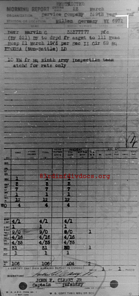 Morning report SERCO/329 for March 23, 1945