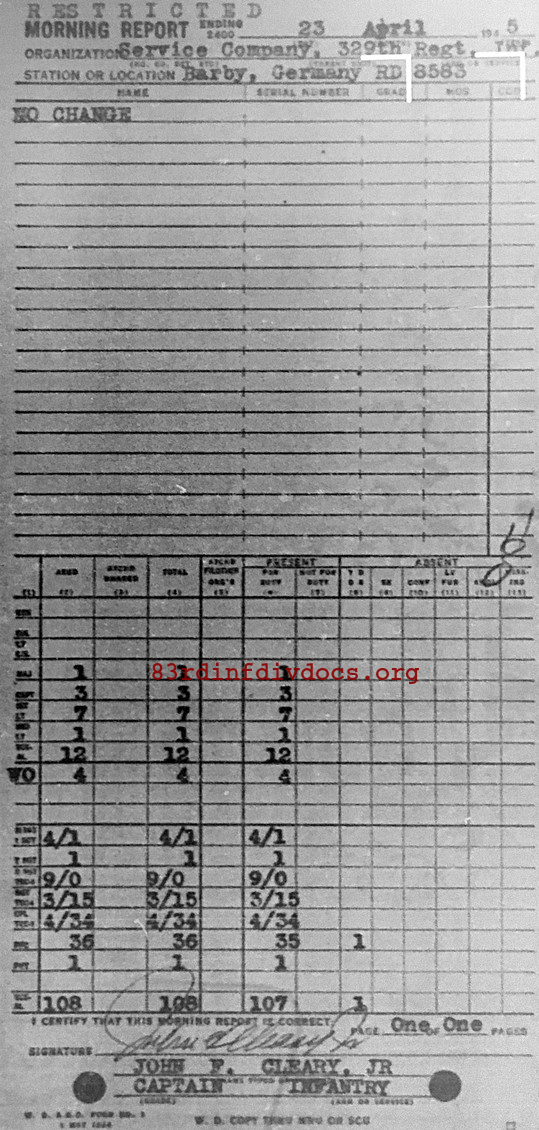 Morning report SERCO/329 for April 23, 1945