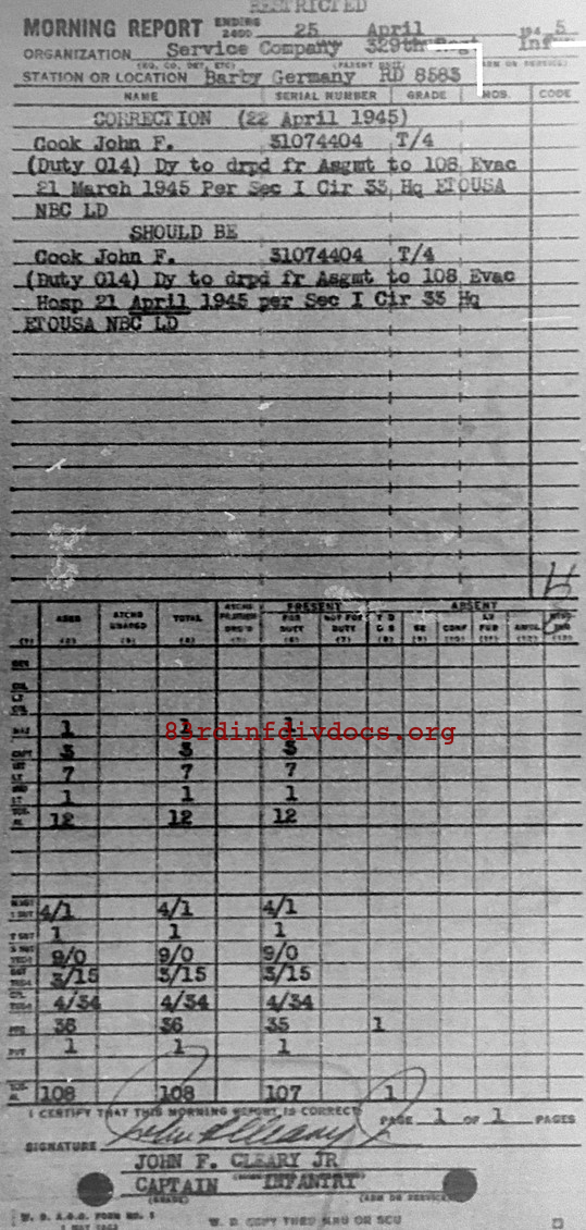 Morning report SERCO/329 for April 25, 1945