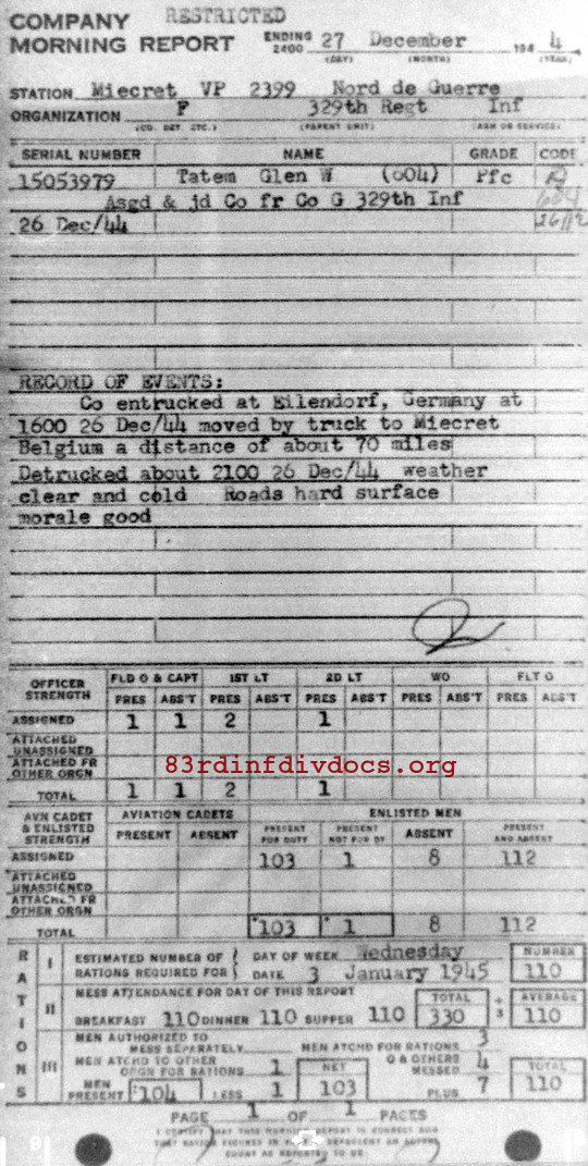Morning report F/329 for December 27, 1944