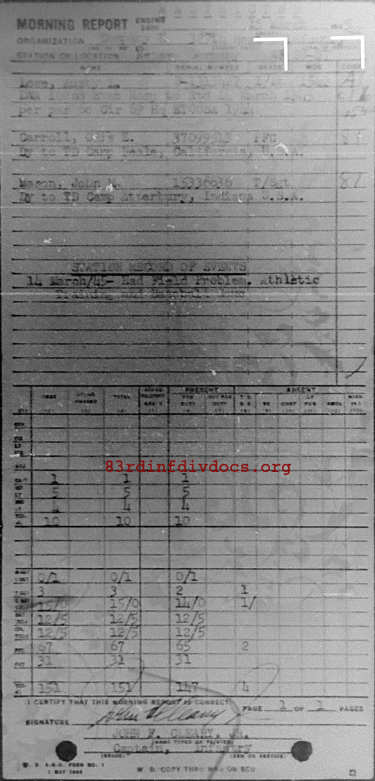 Morning report H/329 for March 15, 1945