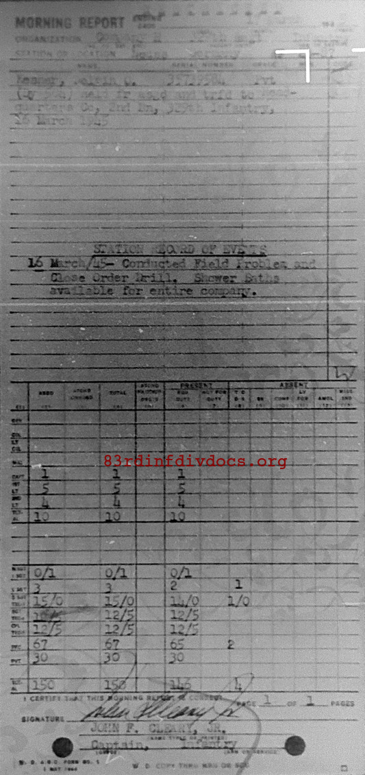 Morning report H/329 for March 17, 1945