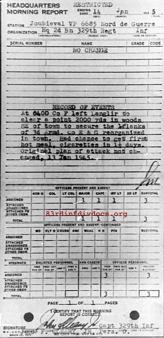 Morning report HQ2BN/329 for January 14, 1945
