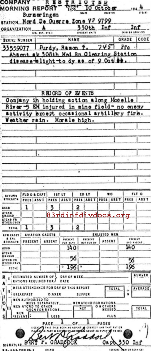 Morning report A/330 for October 10, 1944