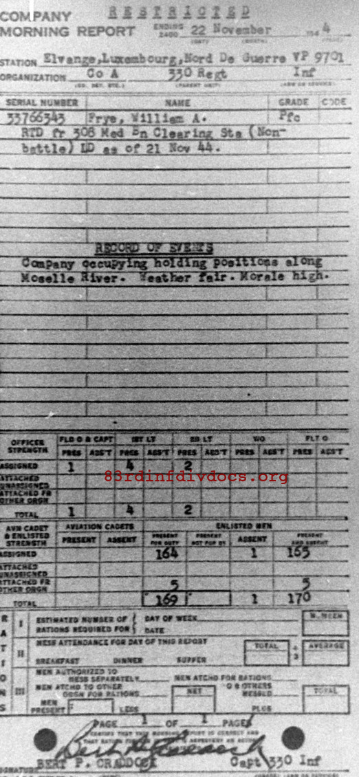Morning report A/330 for November 22, 1944