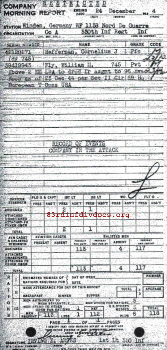 Morning report A/330 for December 24, 1944