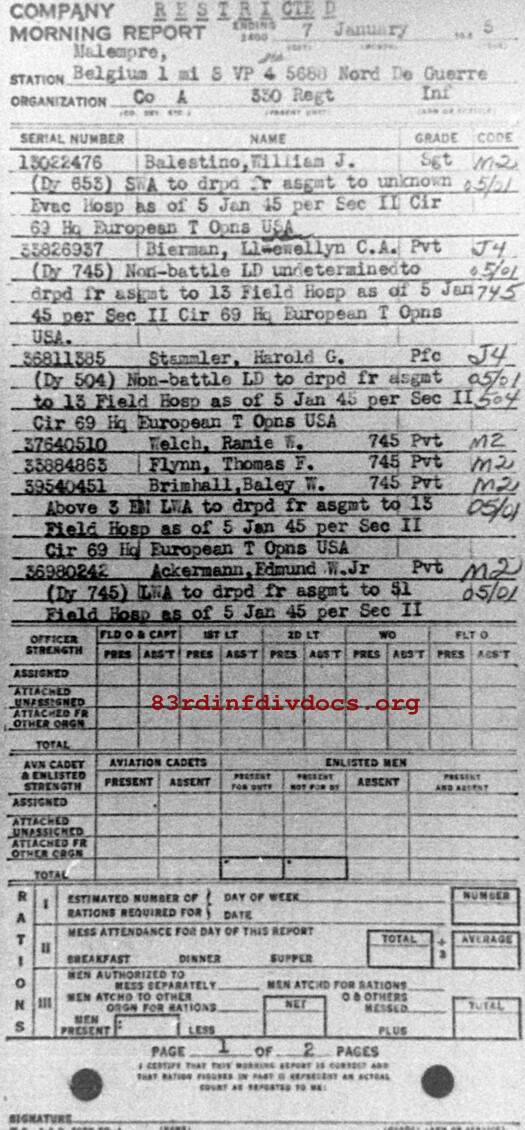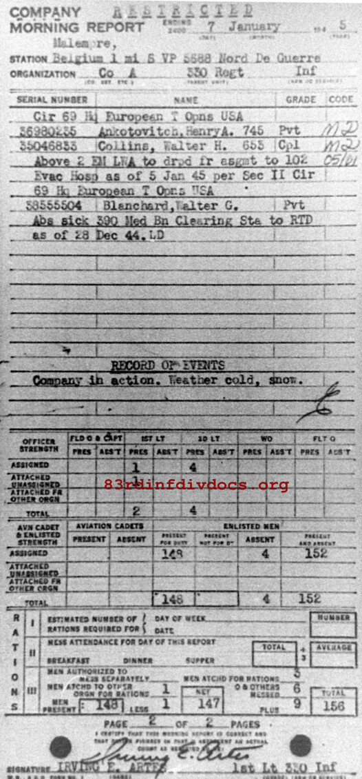 Morning report A/330 for January 7, 1945