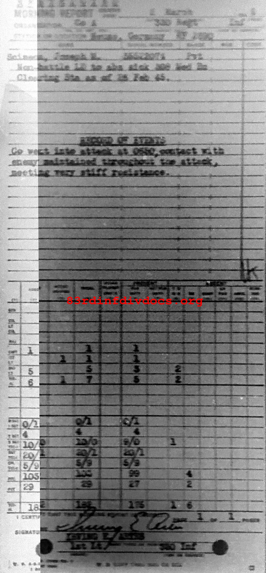 Morning report A/330 for March 2, 1945