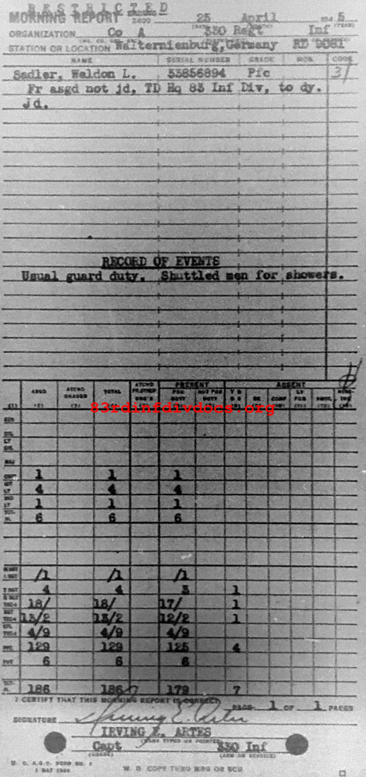 Morning report A/330 for April 25, 1945
