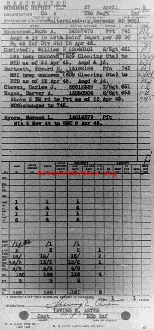 Morning report A/330 for April 27, 1945