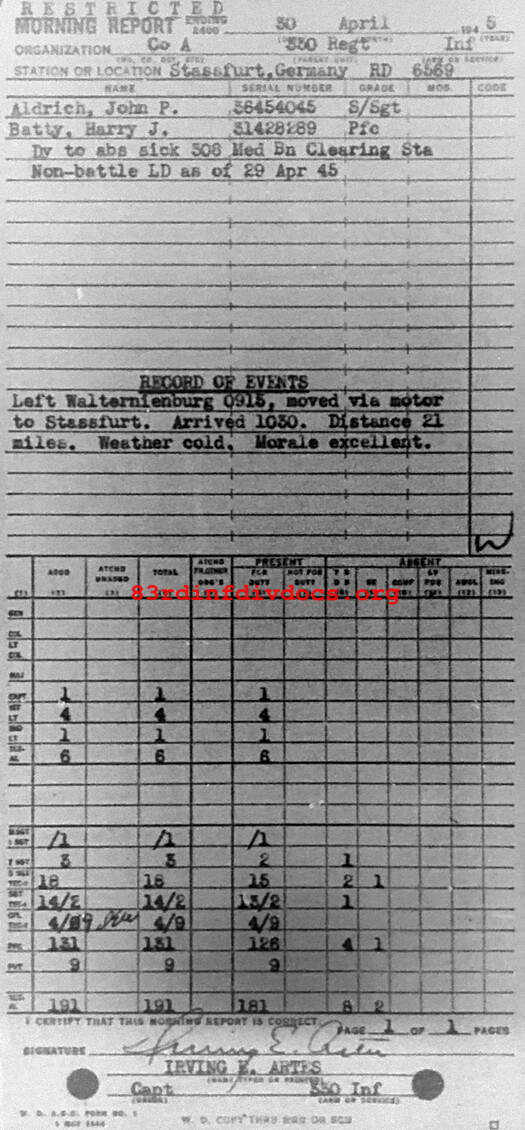 Morning report A/330 for April 30, 1945
