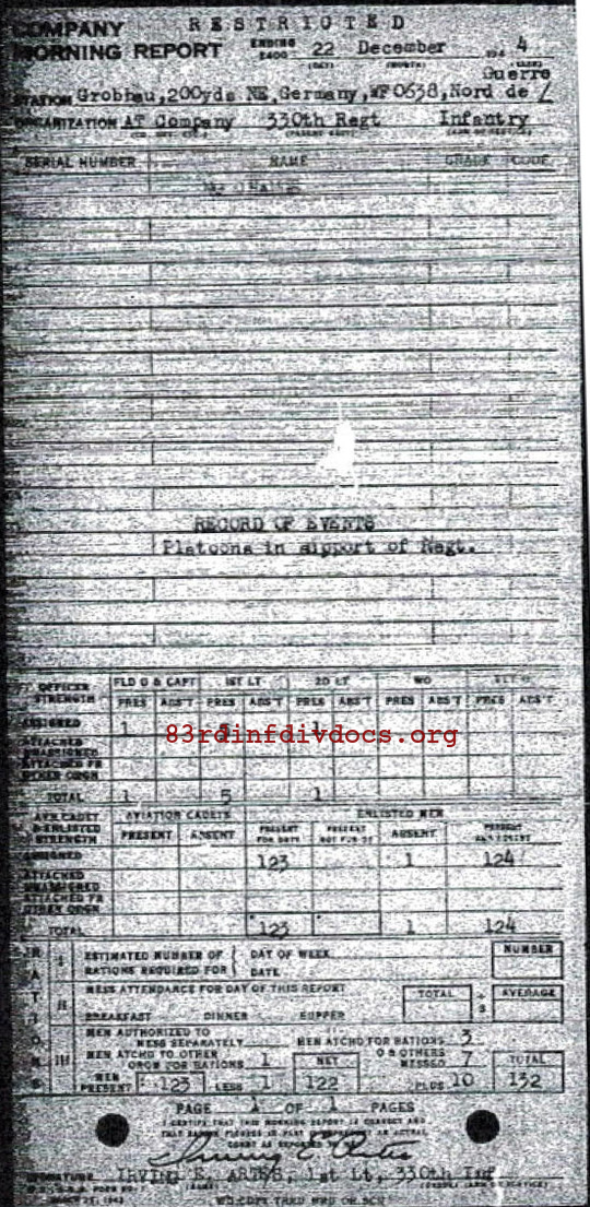 Morning report ATCO/330 for December 22, 1944