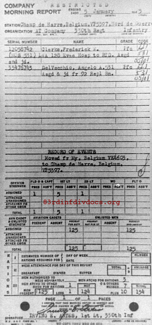 Morning report ATCO/330 for January 5, 1945