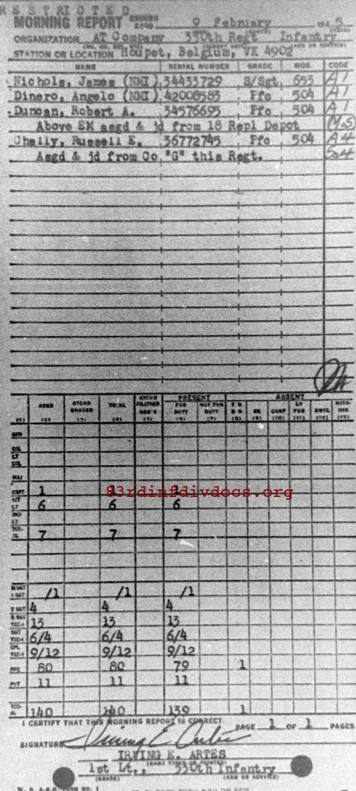Morning report ATCO/330 for February 9, 1945