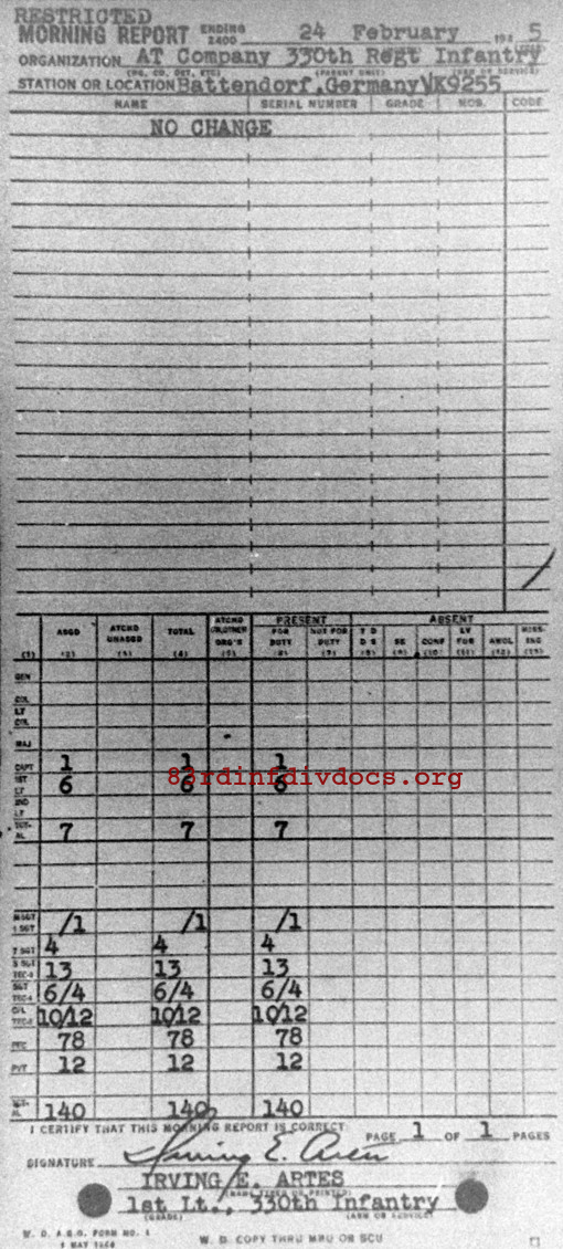 Morning report ATCO/330 for February 24, 1945