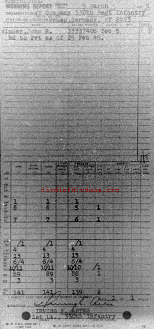 Morning report ATCO/330 for March 5, 1945